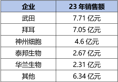 表2. 2023年凝血因子Ⅷ公司销售详情
