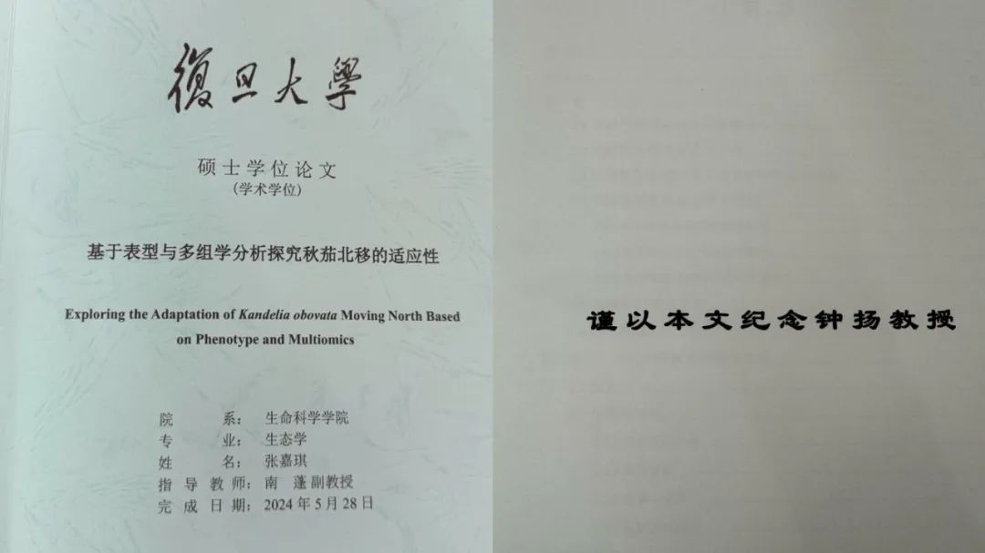 张嘉琪的论文封面和扉页,复旦大学硕士。