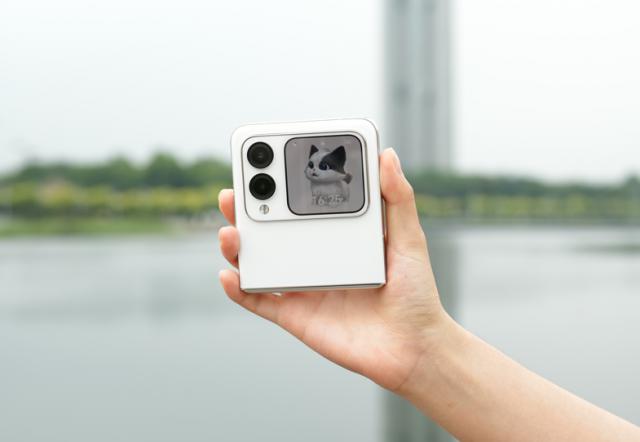 另一种是流行的后置自拍方式,得益于小折机型独特的机身结构,用户可以使用后置镜头自拍,无需他人的帮助。