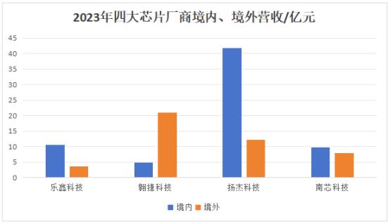 图:2023 年度四大芯片制造商境内,海外营收 / 亿元(资料来源:各大公司 2023 年财报)