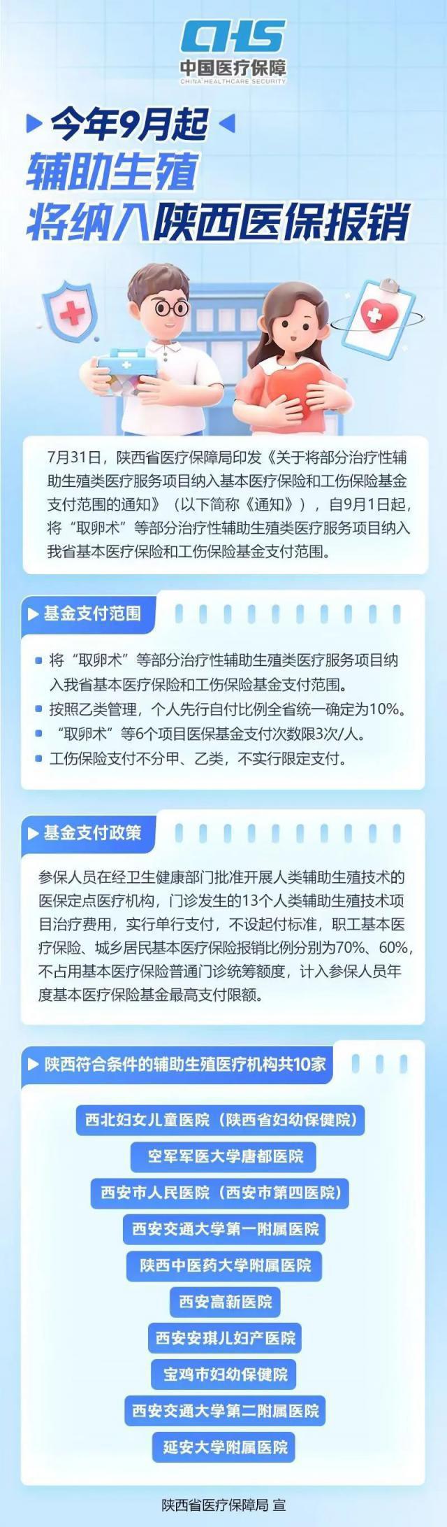 02、9 月 1 日起 陕西省将部分治疗辅助生殖医疗服务纳入医疗保险。
