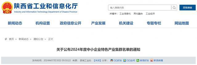 此次陕西省新增的 23 西安市、宝鸡市、咸阳市、渭南市、铜川市、延安市、榆林市、汉中市、安康市分布有个中小企业特色产业群。。