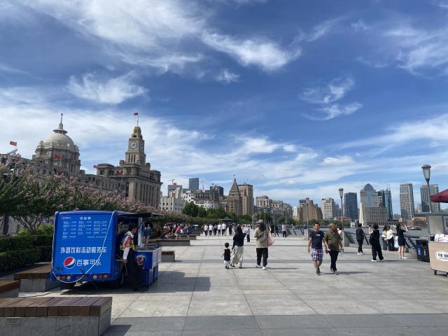 我们可以看到,外滩景区几乎没有商店,而且只有一家商店在经营,就是这样一家。饮品服务点 拍摄店铺,每 200 米有一个