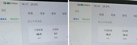 实际测试中,将车内空调温度调节至 18 ℃,并开启旅行模式,座椅通风 3 齿轮。行驶路线通过市政道路和环路,平均速度为 50 ± 2km/h。到达目的地时,车辆显示的里程增加了 10公里,降低续航里程 10公里,也就是平均每行驶10公里 1km 耗费的续航里程大约是 1km。