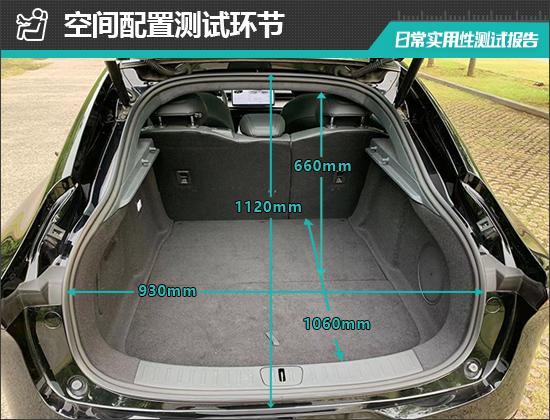 后备箱内部造型整齐,地板平面度好,掀背设计也方便取放物品。后排座椅的支撑比例放下,放下后可以进一步扩大后备箱空间。我们还实际测量了汽车后备箱的基本值,开口长度为 1120mm;张口宽度为 930mm;后备箱进入深度 1060mm;后备箱台与上面的垂直高度为 660mm。