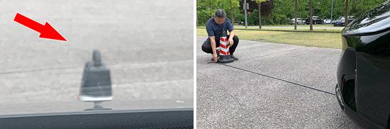 我们采用高度高度来测试前方视野阶段。 70cm 以桩桶为参考,然后调整车距,直到主驾驶座可以看到桩桶的上缘。经过测试,桩桶和车前最后测量的数据是 1.6m,达到同级上游水平。