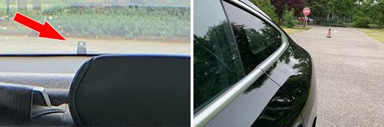 双曲率镜片没有用于评估汽车两侧的外后视镜。经实测,左外后视镜的视野范围为 21.9 °,右外后视镜的视野范围是 19.5 °,测试结果均处于同级中下游水平。