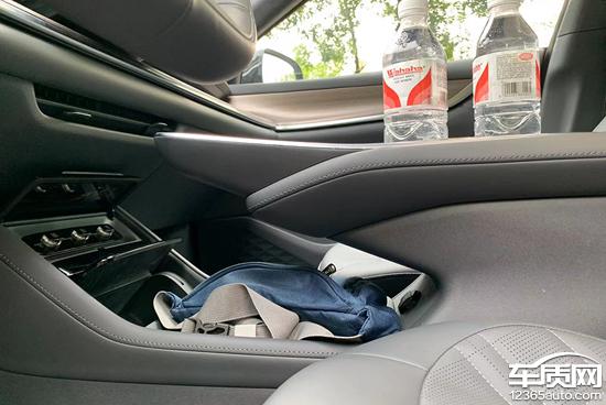实际测量后,除了墨镜,其他固定物品可以合理放置在评估车前排的每个储物空间。虽然没有专门的眼镜盒,但是中控台下面有一个单独的储物空间,可以放下墨镜。需要注意的是,评估车门的储物空间较小,还有进一步改进的空间。
