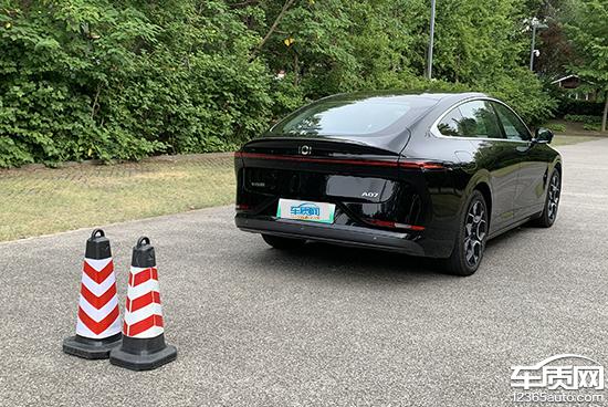 在后视线检测中,桩桶仍然固定放置,然后移动车辆,直到可以观察到桩桶的上缘,测得的距离为 11.8m,结果处于同级别车型的上游水平,后方视野盲点较小。