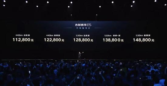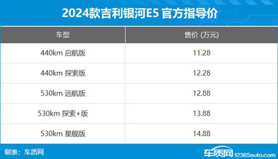 8月3日,吉利银河系列首款纯电动SUV-吉利银河E5正式上市,首批车辆同步交付启动。新车共推出5款车,官方指导价11.28-14.88万元。同时,官方还发布了用户的权益,如新礼物、流量仪式等。(只有在2024年10月1日之前完成大锁的用户才能享受)。