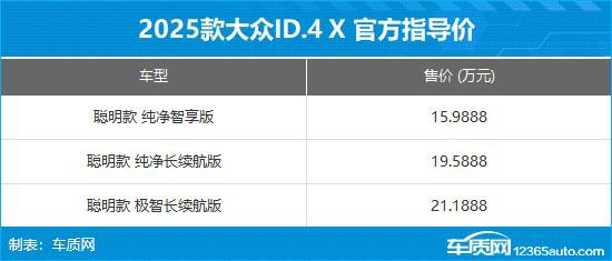 七月三十一日,上汽大众ID.新ID的家族.4 X 智能型号正式上市。ID.4 X 智能型号推出三款车型,并赠送ID版本。.Care保值包权益。其中,纯智能版限时成交价格低至14.99万元,纯长续航版和极智长续航版成交价格均有所下降,性价比进一步提升。与此同时,在2024年9月30日之前购买ID.4 X 智能车型,还可以赠送12.9英尺悬浮中控屏和ID.S 5.0系统,即价值5088元的智能汽车礼品。