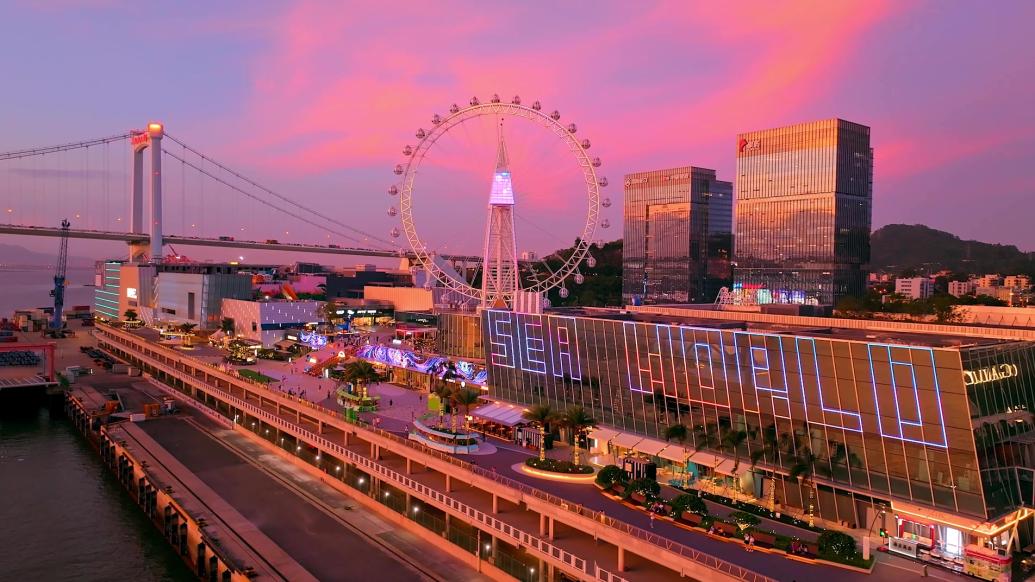 日落时分,厦门海上世界紧邻厦门邮轮母港,犹如一艘商业“巨舰”。