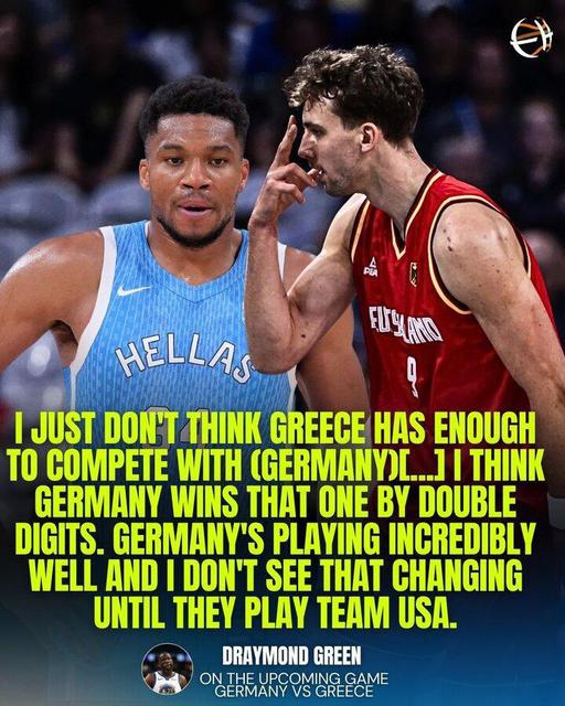 我只是觉得希腊没有足够的实力和德国竞争。我认为德国会以两位数的比分击败希腊。德国打得很好,我觉得这种情况不会改变,直到他们对阵美国队。