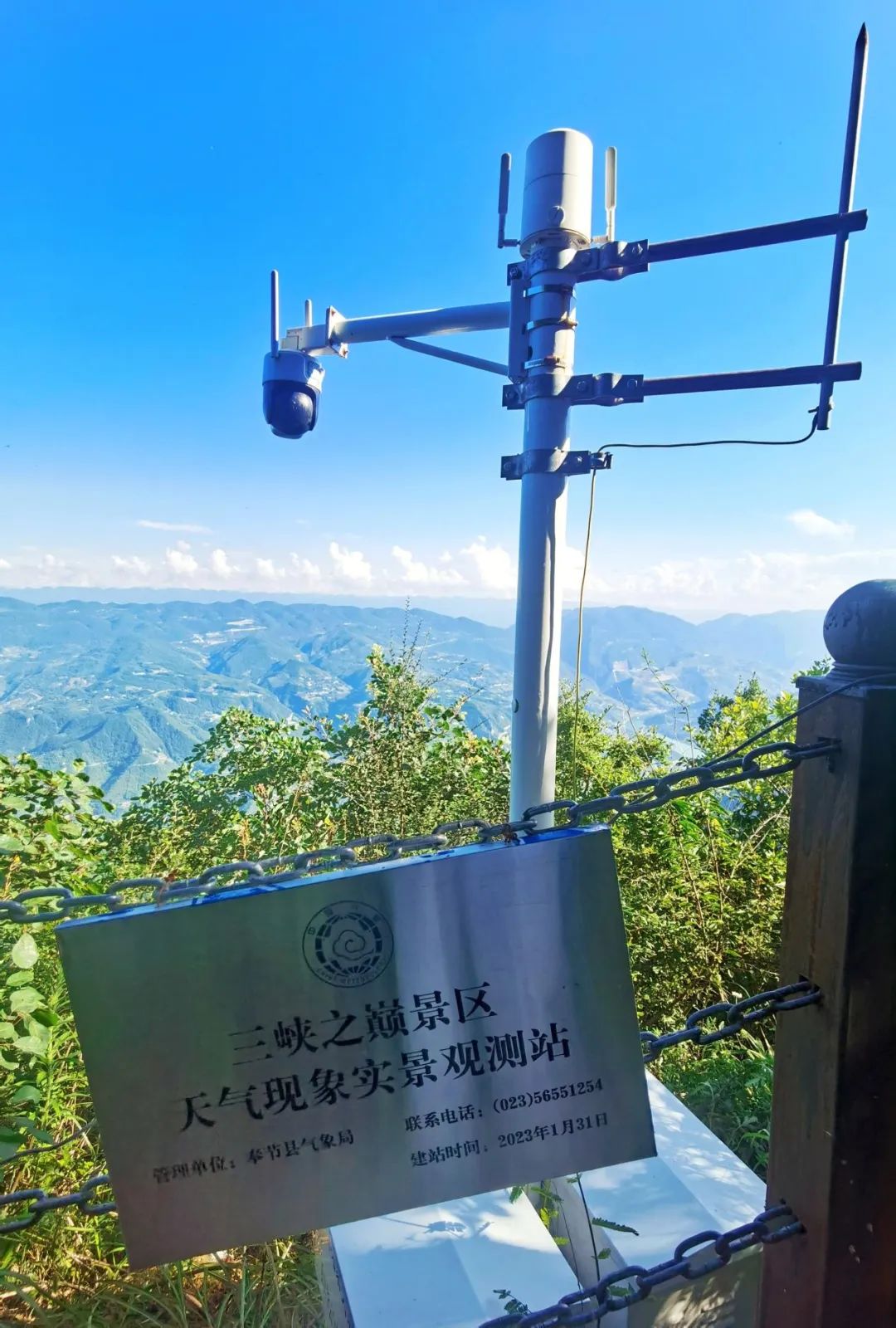 2024年,奉节县气象局在“三峡之巅”景区新建了一个气象观测站。该站的建设可以与白帝城景区气象观测站共享数据,让山脚下的游客及时了解山脚下的天气,山脚下的游客也可以了解山脚后的情况,解决了“一山分四季”的局部微气候检测问题,为游客出行提供了更贴心的服务!