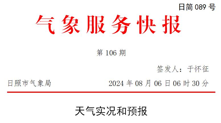 八月五日八时至八月六日六时,部分地区出现大风,陆地极大地为25.5m/s出现在东港区南湖镇下湖水库气象观测站(10级),海上32.2m/s(11级),出现在岚山海上平台气象观测站,17.2m/s超过5个网站(8级)。
