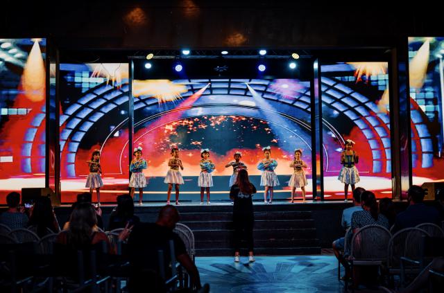 然后晚上排练结束(是的,宝宝要排练,晚上有节目),带宝宝去吃晚饭(或者交给宝宝 G.O)。接着送去化妆,晚上看娃的汇报表演。