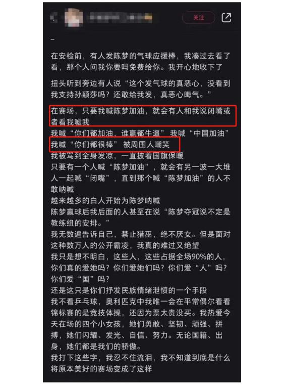 那些伤害陈梦的人认为他们在支持孙颖莎。