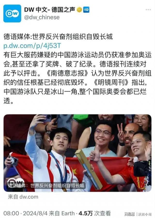 然而,即便如此,我们的奥运选手取得了如此出色的成绩,以至于一些人打破了防守。毕竟,游泳一直是美国、澳大利亚等国家的传统优势运动,长期垄断金牌榜的位置。潘展乐的出现不可避免地会伤害到一些人的眼睛。