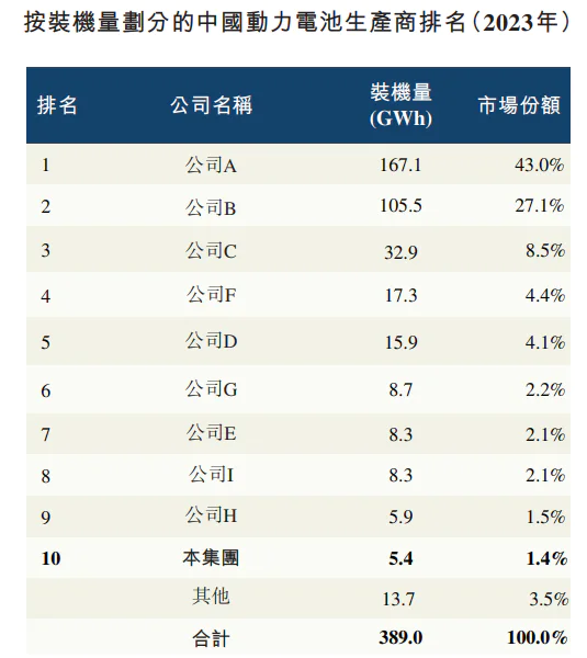 就市场份额而言,2023年公司动力电池装机容量为5.4GWh,动力电池市场排名第十,磷酸铁锂电池、三元动力电池市场排名第七、第八。