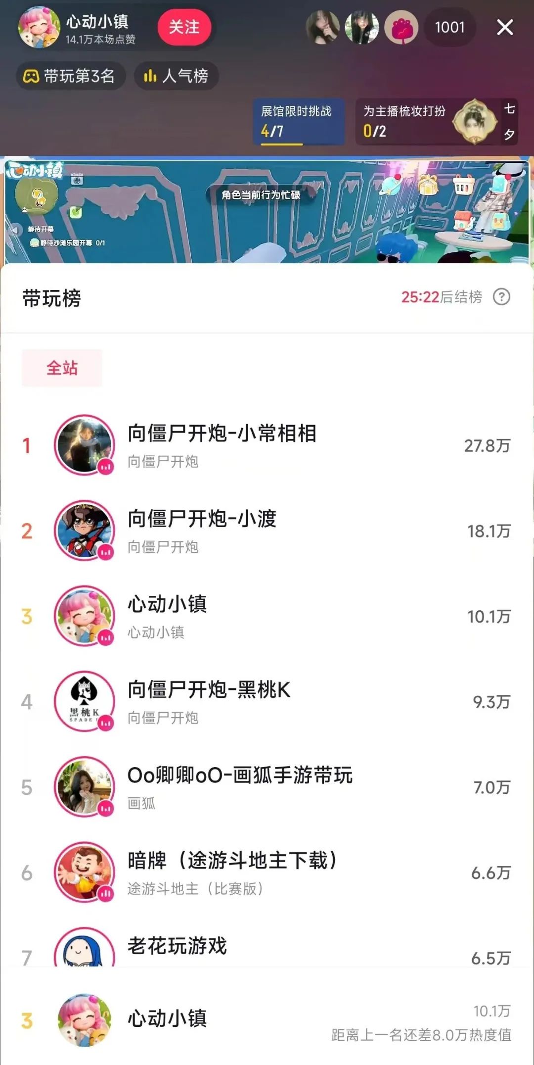另一方面,游戏的吸引力也与其游戏性密切相关。以7月17日首次测试的《心跳小镇》为例,其主要展示了抖音官方直播中的真实游戏画面,成功跻身抖音游戏带玩榜前三,无需主播过多引导话题。