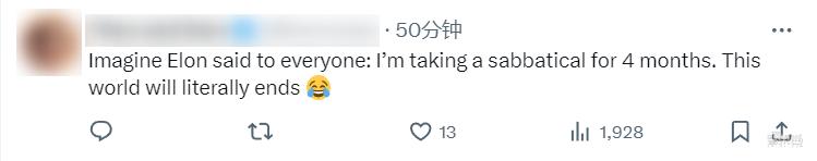 也有网友拿马斯克比较:“想象一下Elon对大家说:我要休假4个月。这个世界真的会灭亡。”