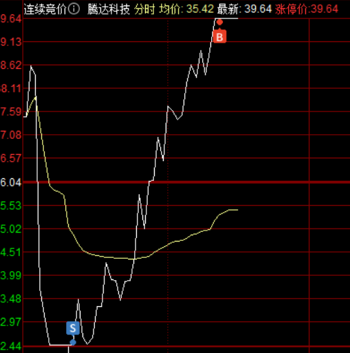 今日早盘,昨日走出11连板大牛股。腾达科技放量巨震,9:35跌停后于9:39翘板拉升,最终在10。:10封涨停板,但受市场下跌和高位股退潮影响,早晨收盘前爆盘;下午拉涨无力,最后收盘再次跌停。
