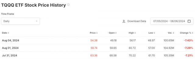 在 7 本月,投资者向英伟达、英特尔等科技巨头股票提供杠杆。 ETF 投资数十亿美元,他们的投资技术股将大幅反弹。但是现在,随着衰退恐慌的加剧,纳斯达克 100 指数大幅下跌,利用杠杆放大收益。 ETF 特别是受重创。