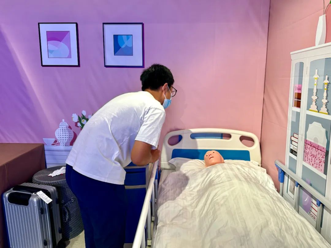 "奶奶,以后你有事就给我打电话,我过来和你聊天。"现场,家政(养老)组选手屠绿茵针对情况下老人独居的特点,在安全照顾的同时,更注重给老人情感上的安慰。细致的护理技术和温柔亲切的语言表情得到了现场审查的一致好评。他说:“实际上是换位思考,如果我是这个老人,我需要什么样的护士?”谈到技术要点,屠绿茵介绍道,“把需要照顾的老人当家人,用心就好。”