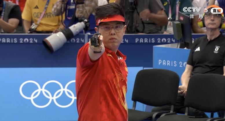 25米手枪速射决赛中,巴黎奥运会枪击男子,