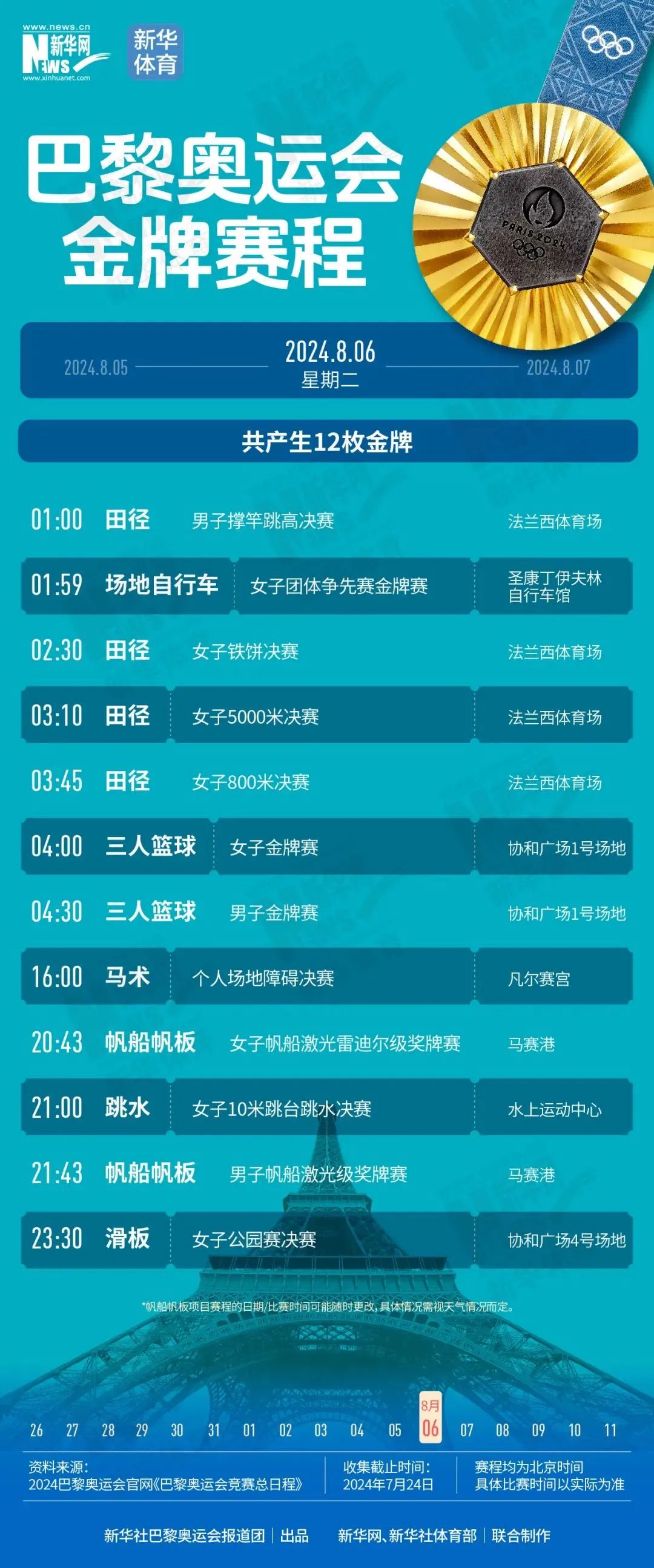 巴黎奥运会将于当地时间8月6日进入第11个比赛日。