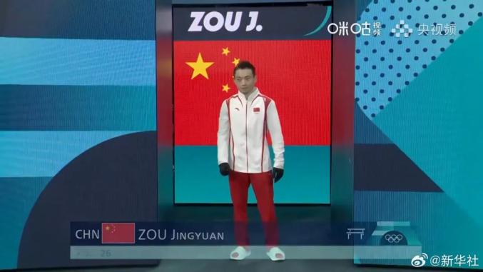 八月五日,中国选手邹敬园在赛场上。新华社记者 程敏 摄