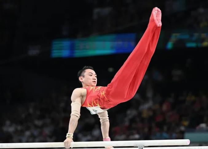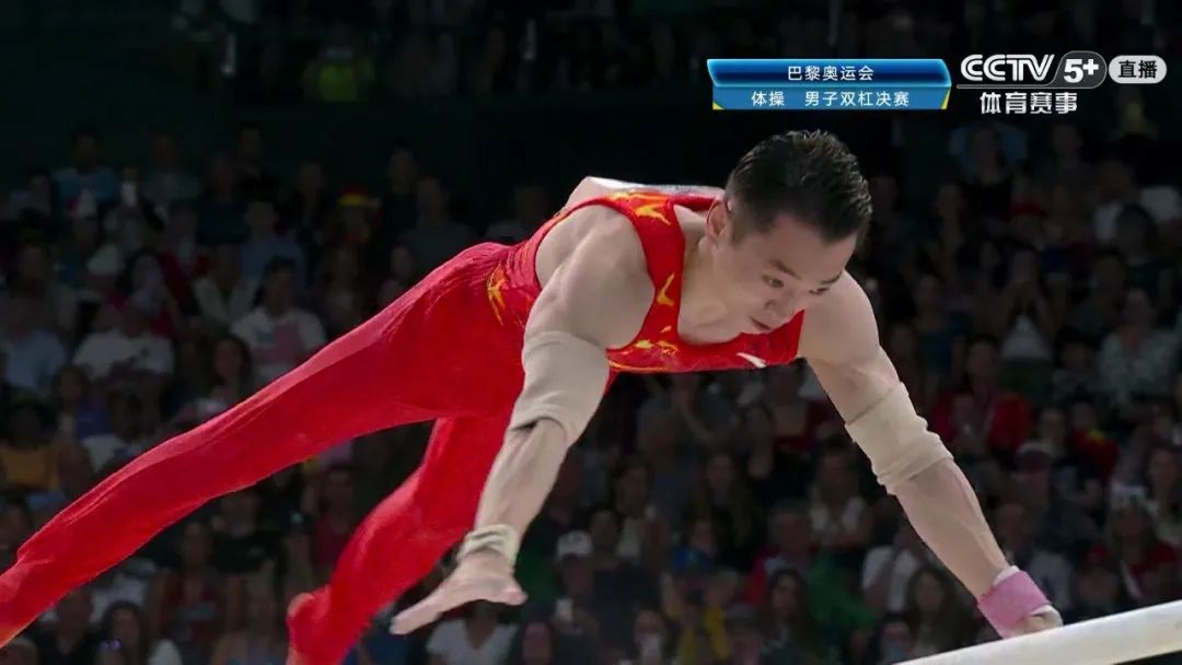 中国选手邹敬园在5日举行的巴黎奥运会体操男子双杠比赛中夺冠!