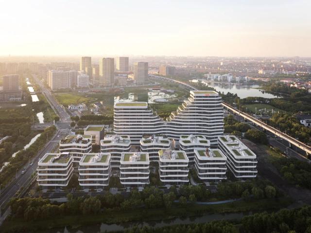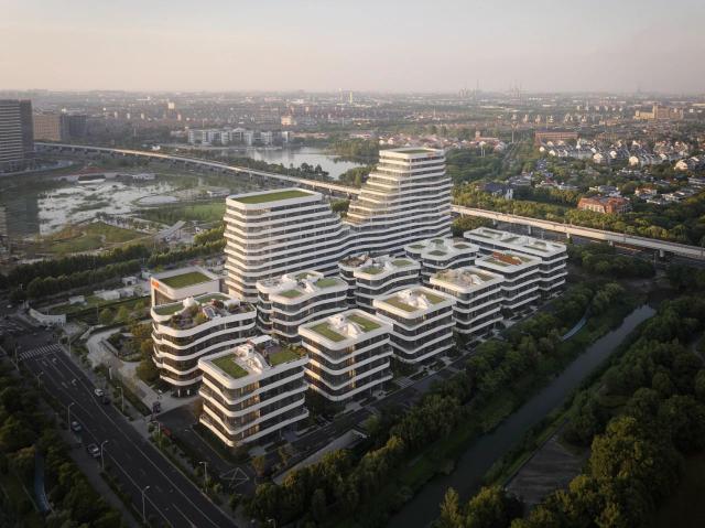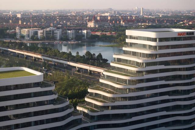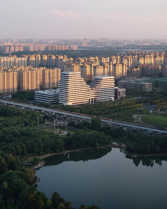 由 HATCH 汉齐建筑事务所操刀规划及建筑设计 MAX 科技园上海 · 美兰湖打破了这种刻板印象,创造了一个与周围生态景观相连、动态开放的智能科技社区,并配备了餐饮、公寓和休闲健身设施。