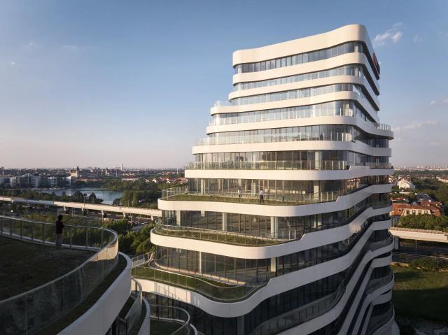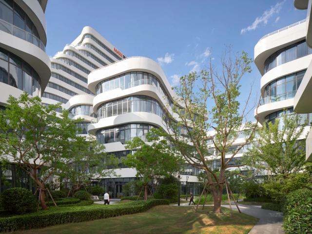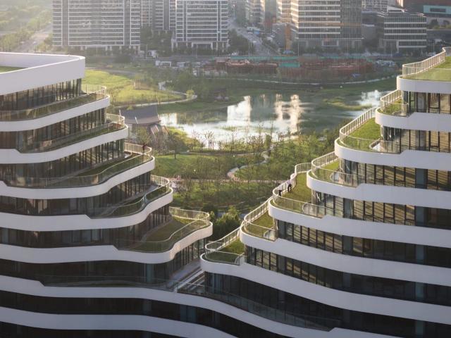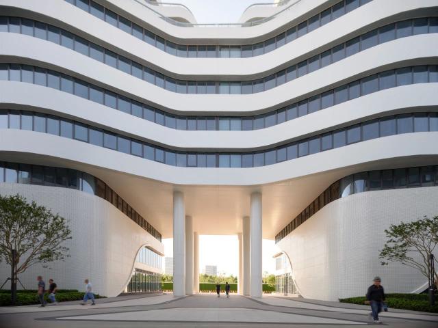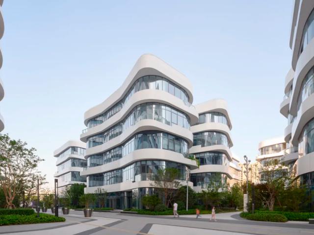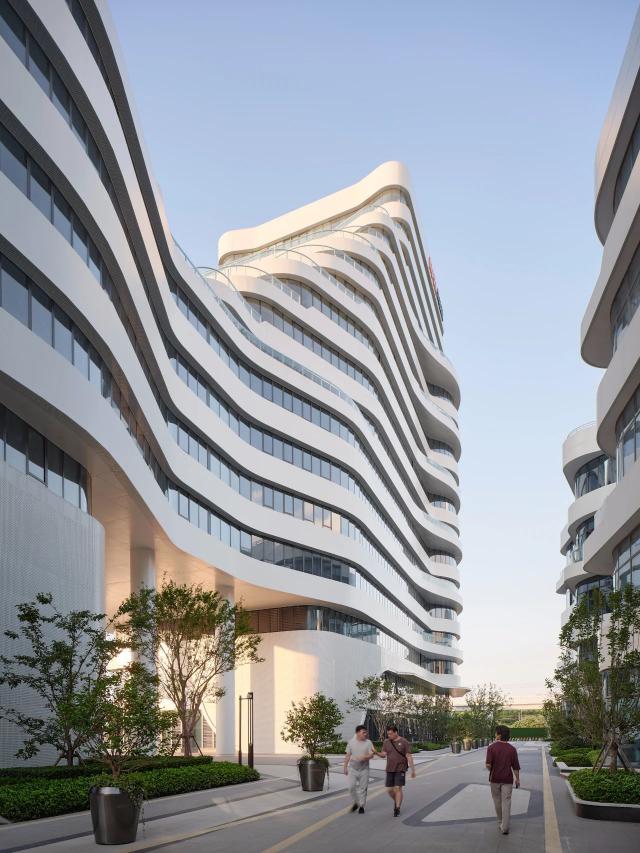 在建筑设计中,每栋单体建筑的立面都是由“山谷”的白色曲面组成,具有高峰和节奏,打破了传统科技创新园区的刻板造型特征。