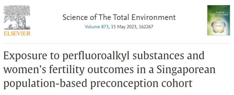 ⑤Cohen NJ, Yao M, et al. Exposure to perfluoroalkyl substances and women's fertility outcomes in a Singaporean population-based preconception cohort. Sci Total Environ. 2023 May 15;873:162267. doi: 10.1016/j.scitotenv.2023.162267. Epub 2023 Feb 17. PMID: 36801327.
