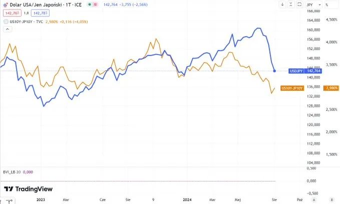 无独有偶,ATFX Global Nickkets首席市场分析师 Twidale还表示,套利交易头寸大规模投降。“每个人都同时跑到门口。这些行为最初是由日本央行加息引起的,但在过去的几天里,对全球经济增长的焦虑也在火上加油,销售也变得激烈起来。”