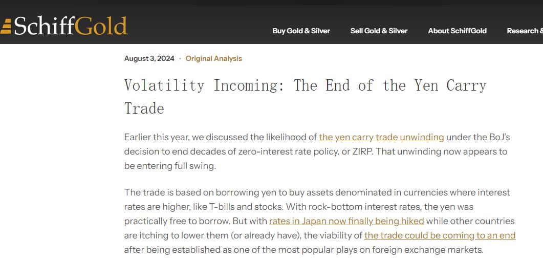 彼得·希夫指出,这对全球市场有很大的潜在影响。日元的起伏可能会给杠杆下注带来麻烦,可能会引发一波额外存款的浪潮,从而引发更广泛的全球销售。如果日元增值导致石油等大宗商品价格上涨,日本央行将采取更多的治疗措施,进一步消除套利交易,这将进一步加剧风险——希夫认为这种情况可能会变成全球市场的混乱。