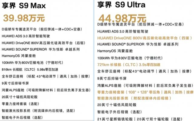 Max 版 39.98 万, Ultra 版 44.98 万。
