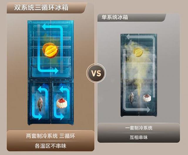 不仅如此,这款冰箱还有三个循环系统。与单循环相比,它不仅可以使冷藏室和冷藏室之间没有异味,而且可以使食材更加安全,使冷藏室的温度控制更加持久,使冷藏室的制冷效率更加高,从而实现多重目标。