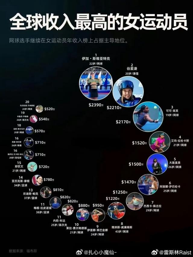 @雷斯林 Raist:女子网球运动员,是世界上所有女运动员中收入最高的,几乎没有一个。