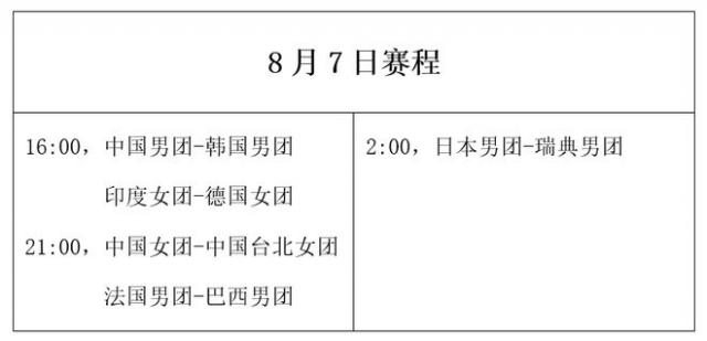 奥运会乒乓球:8月7日赛程公布!国乒男团迎战韩国,女团迎战中国台北
