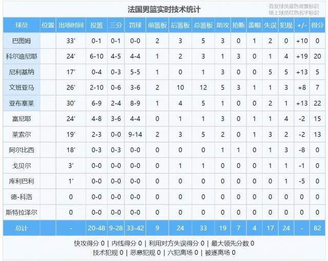科尔迪尼耶,法国队出战。 24 分钟,10 投 6 中间,高效砍掉 20 分 3 篮板 3 断球。莱索尔 3 投 2 中,罚球 14 中 9,获得 13 分 5 篮板 2 助攻。这场比赛的罚球数量引起了争议:法国队 42 罚 33 中,加拿大 25 罚 18 中。光是罚球这个项目,加拿大就少了。 15 分。