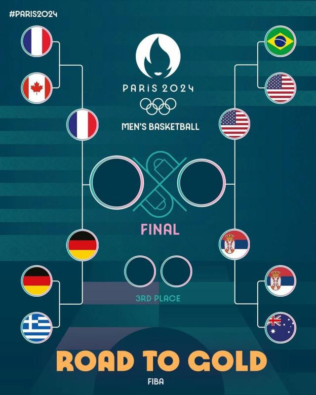 北京时间 8 月 7 早上,奥运男篮 1/4 所有决赛都结束了:美国 122-87 击败巴西;法国 82-73 击败加拿大;塞尔维亚 95-90 加时赛击败澳大利亚;德国 76-63 逆转希腊(详见最后一篇)。奥运四强对战:法国 vs 德国;美国 vs 塞尔维亚。
