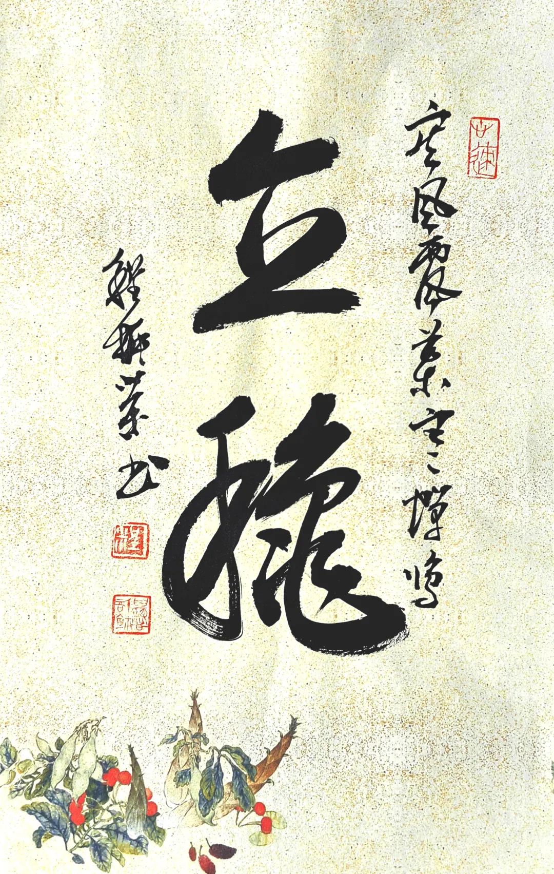 “立秋”二字选用篆书字体,技巧上下排列,“立”在上面,“秋”在下面,形成一定的视觉层次和稳定平衡感。“立”字略高而紧凑,以体现其高度的趋势;“秋”字适当放宽,生动的字体展现了立秋万物趋于茂盛完美的特点。