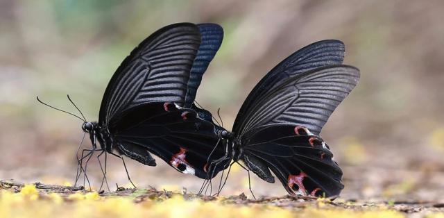 飞行中的巴黎翠凤蝶和微距镜头下的后翼就像外星人的家乡:深邃而神秘的星空。南兆旭摄