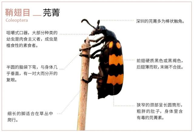 大约有鞘翅目的昆虫 40 万种是昆虫家族中最大的一种,鞘翅目昆虫通常被称为“甲虫”。深圳常见的鞘翅目昆虫有天牛、虎甲、金龟、步甲、叶甲、瓢虫。