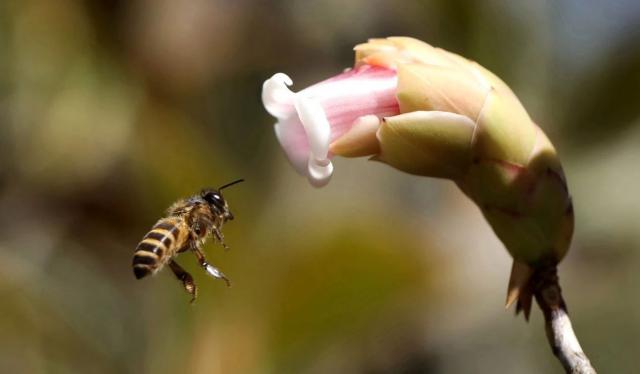 一只工蜂可以在鲜花盛开的季节粘住它。 5 万至 75 万 粒花粉。当一只工蜂飞回蜂窝时,它的身体带来的花粉和花蜜接近它体重的五分之一。令人惊讶的是,它仍然可以每小时使用。 20 多公里的速度航行。南兆旭摄
