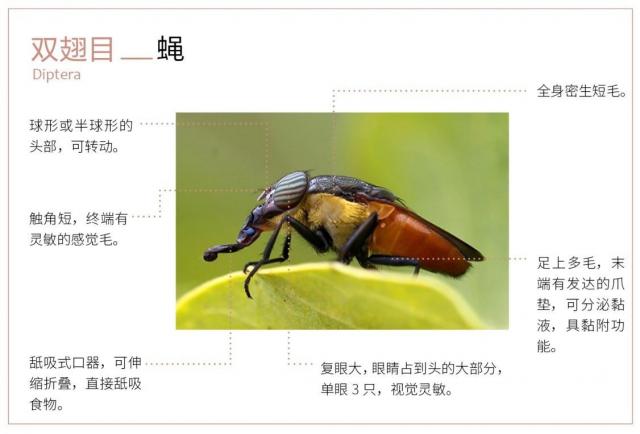 双翅目是昆虫中的一个大家庭,成员中有我们最熟悉、最不喜欢的苍蝇和蚊子。有一对发达的翅膀,擅长航行。