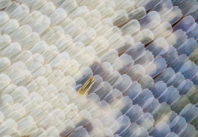 丝绸蝴蝶和放大 50 蝴蝶翅膀翻倍后,翅膀上的每一个鳞片都有自己的颜色,像瓷砖一样重叠,形成多变而美丽的图案。谢睿摄