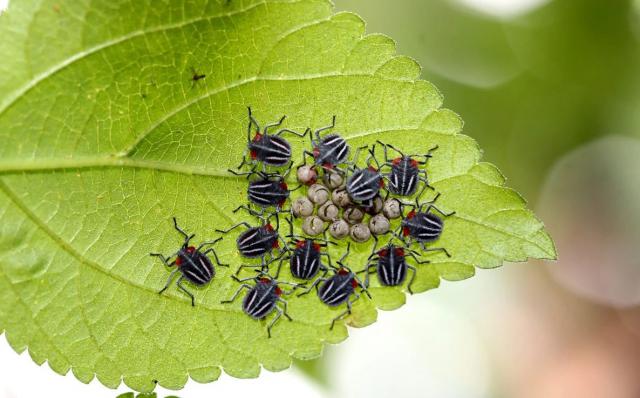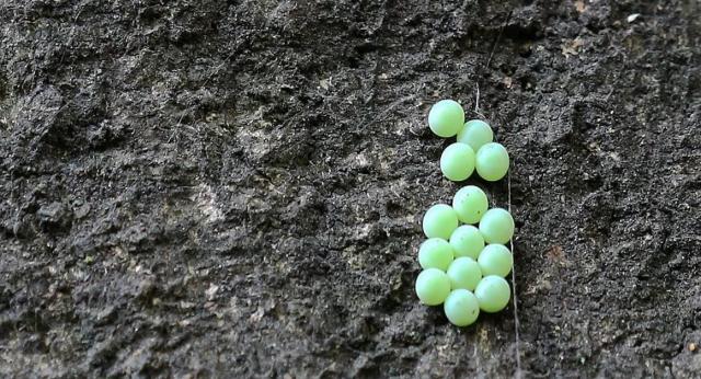 荔枝的卵和刚孵化出来的荔枝若虫。南兆旭摄取